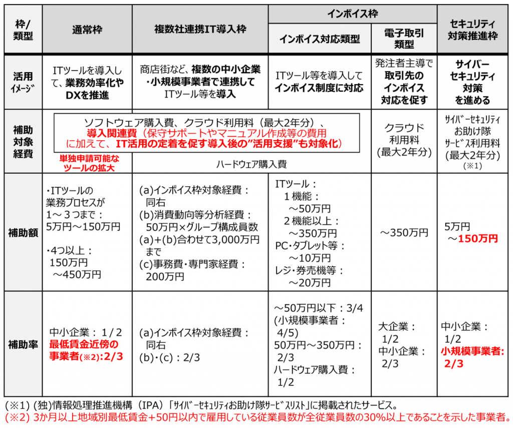 | 通常枠 | インボイス対応類型 | 電子取引類型 | セキュリティ対策推進枠 | |