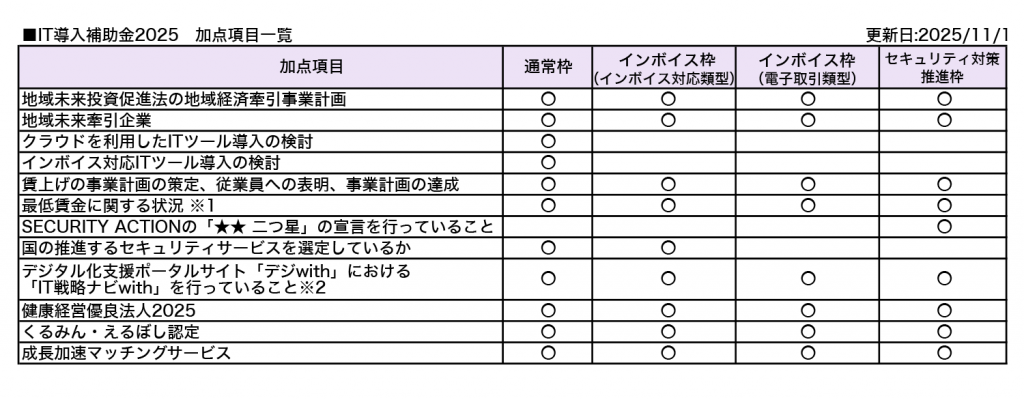 *加点略称意味:通…通常枠 イ対…インボイス枠(インボイス対応類型) イ電…インボイス枠(電子取引類型) セ…セキュリティ対策推進枠